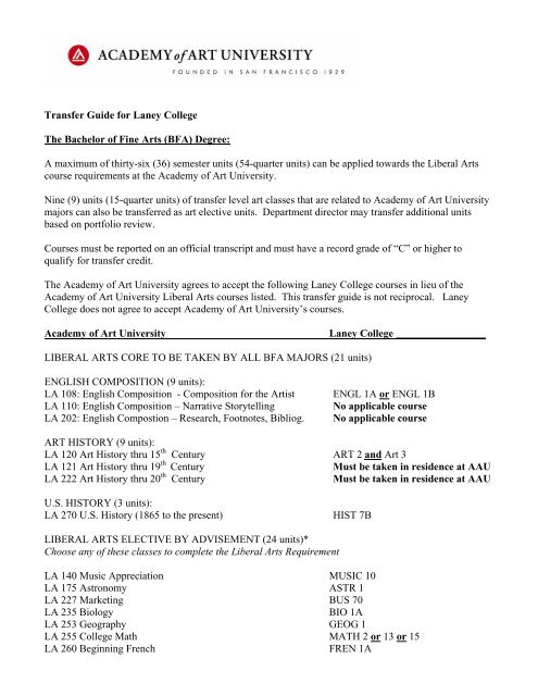 Transfer Guide For Laney College The Bachelor Of Fine Arts Bfa